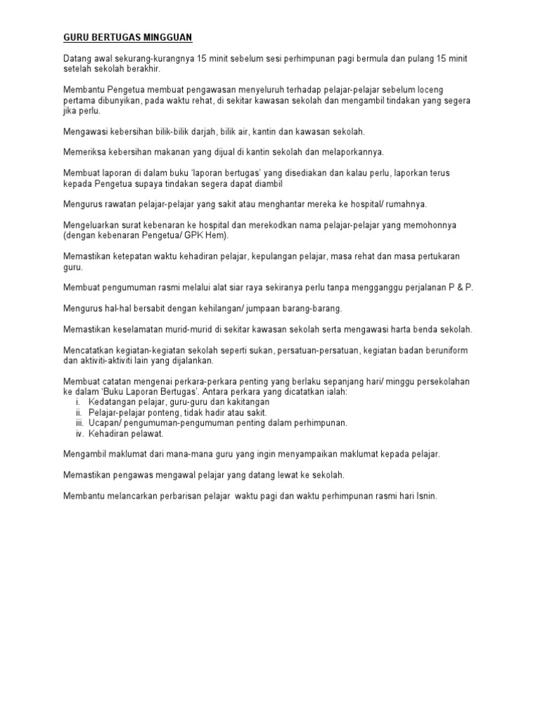 Hem Tugas Guru Bertugas Mingguan Pdf