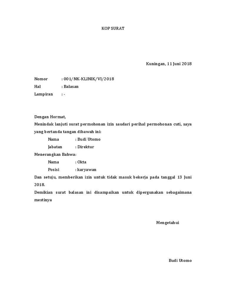 Contoh Surat Balasan Cuti Alexaku Mcfarland
