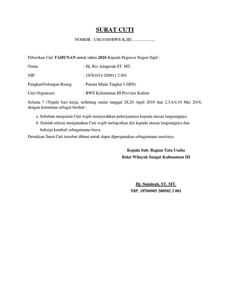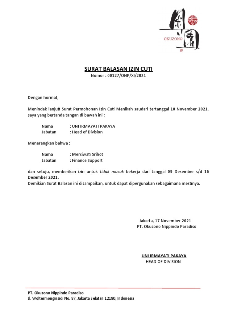 Surat Balasan Cuti Menikah Merci Pdf